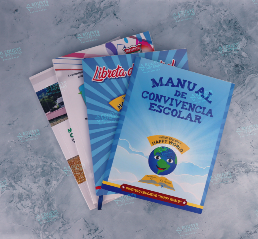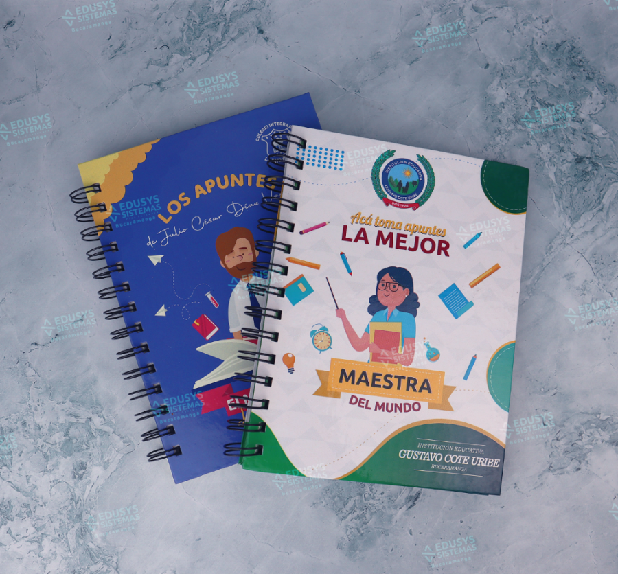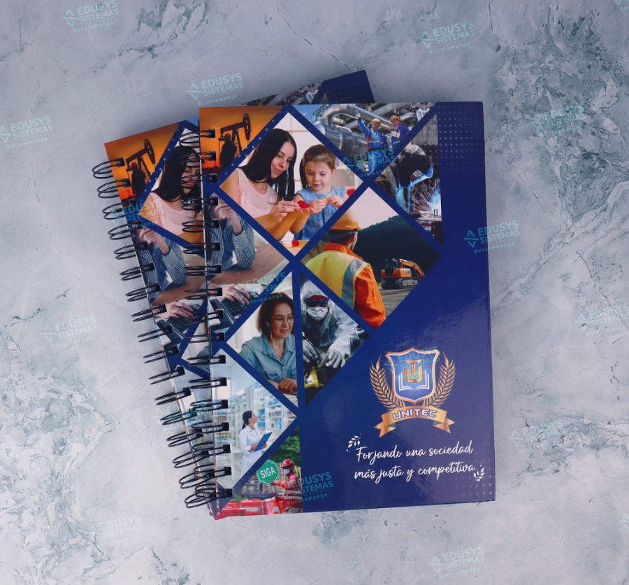 Elaboración de manuales y agendas escolares, diferentes tamaños y materiales.